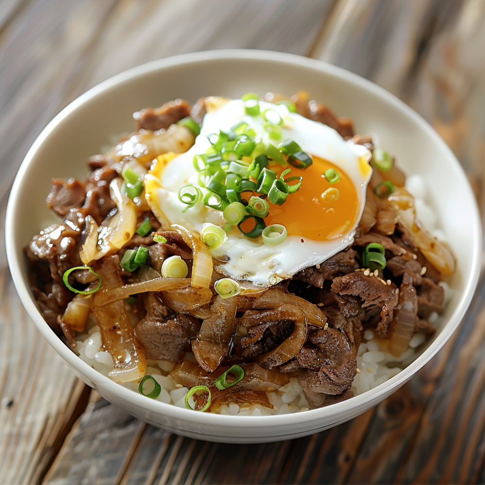 Японская классика: рис с тонко нарезанной говядиной и луком, тушёнными в соусе. Простое и сытное блюдо, которое любят за домашний вкус.